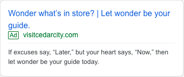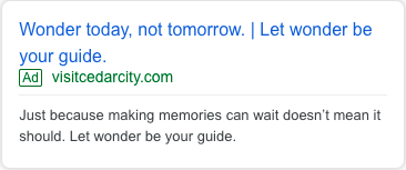 The process: We paired a long list of wonder-themed lines with a variety of images for a dynamic google ads algorithm. These assets were mixed and matched based on their click-through rates to find the best possible match.